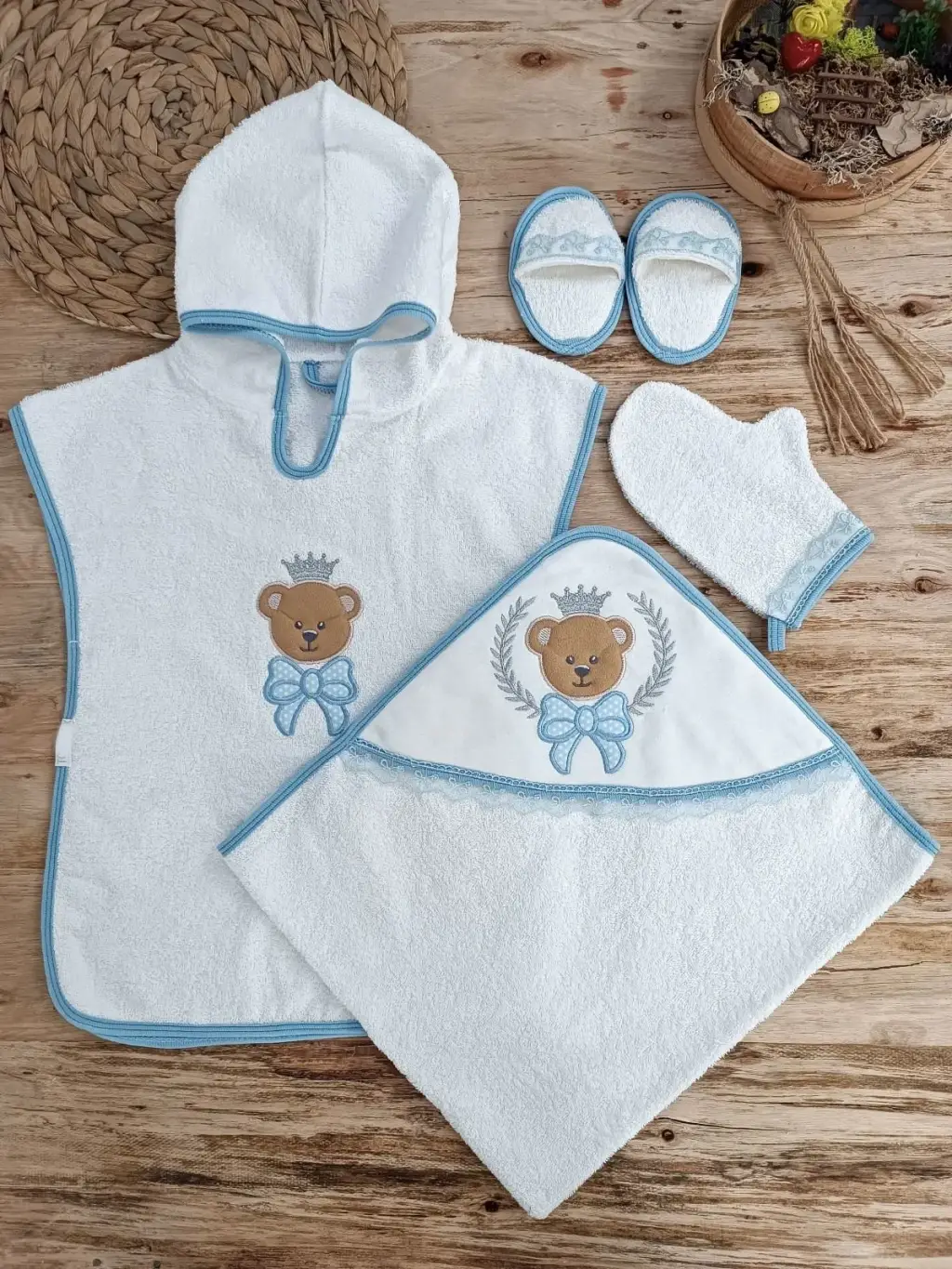 0-1 Yaş Bear Nakışlı Pareolu 4lü Erkek Bebek Havlu Silgi Takımı