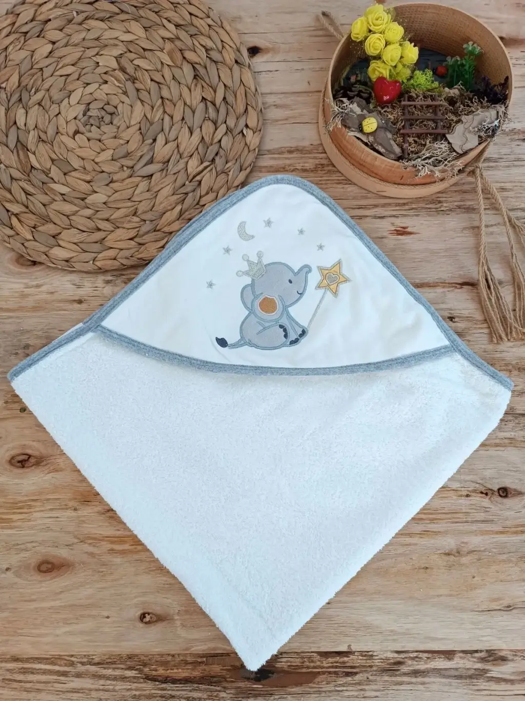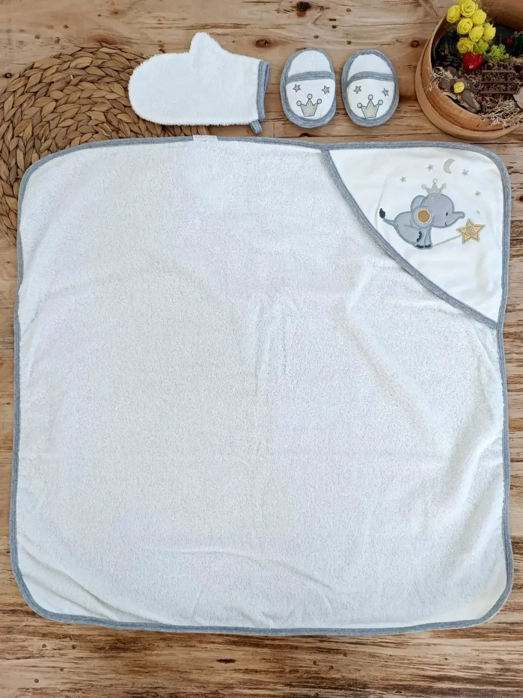 Sevimli Fil Nakışlı 4'lü Bebek Havlu Silgi Takımı