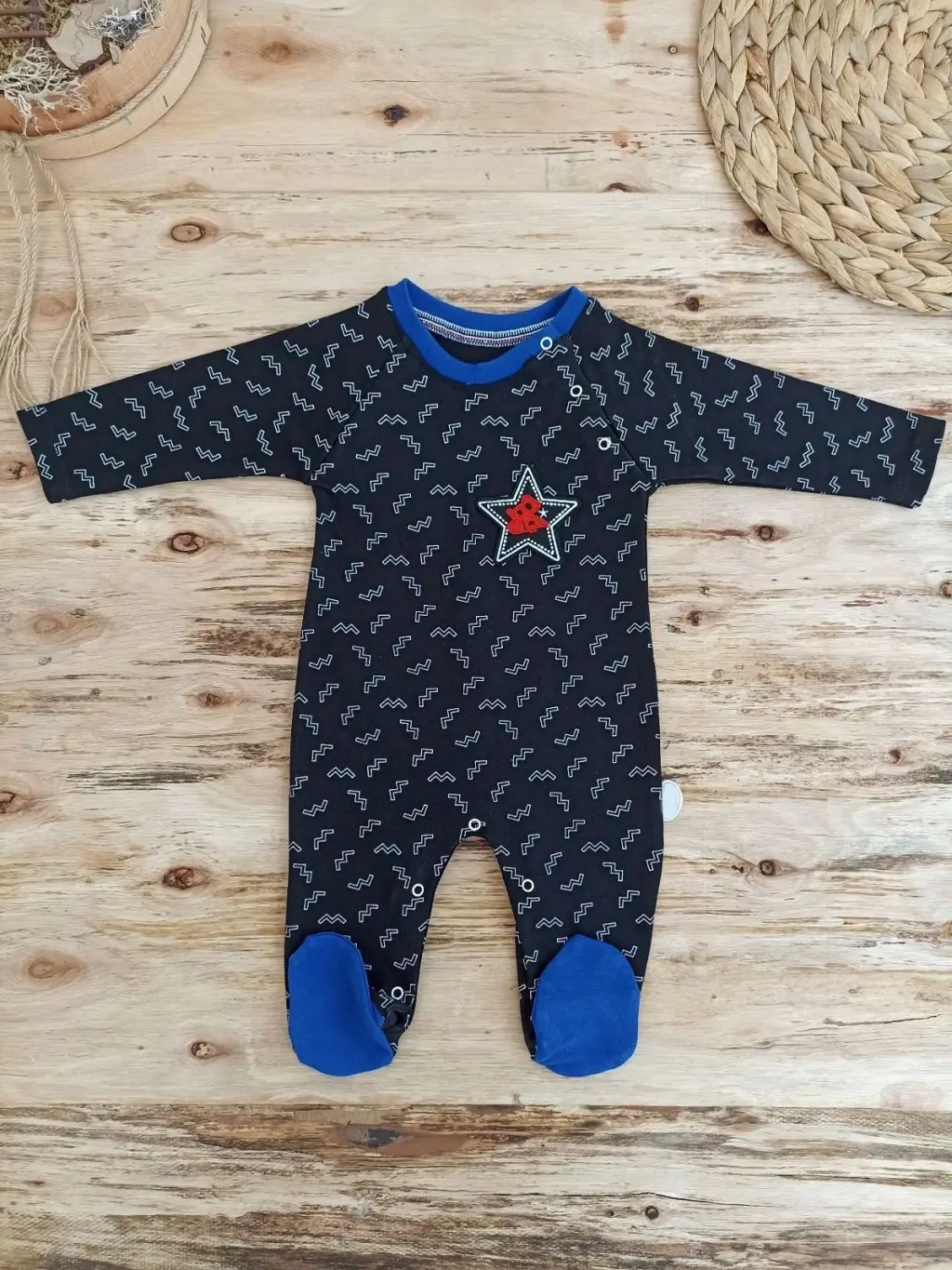 0-3 3-6 6-9 Ay Star Baby Baskılı Çıt Çıt Kapama Erkek Bebek Tulum