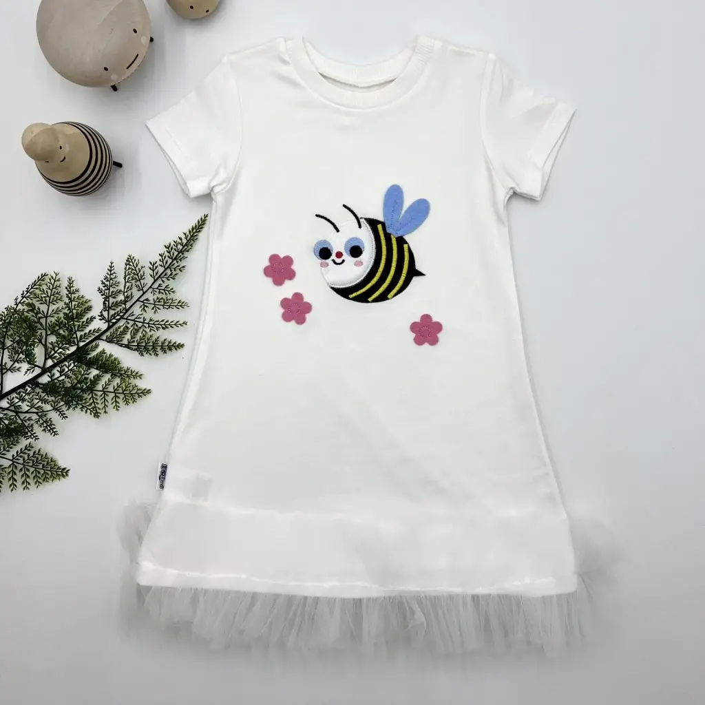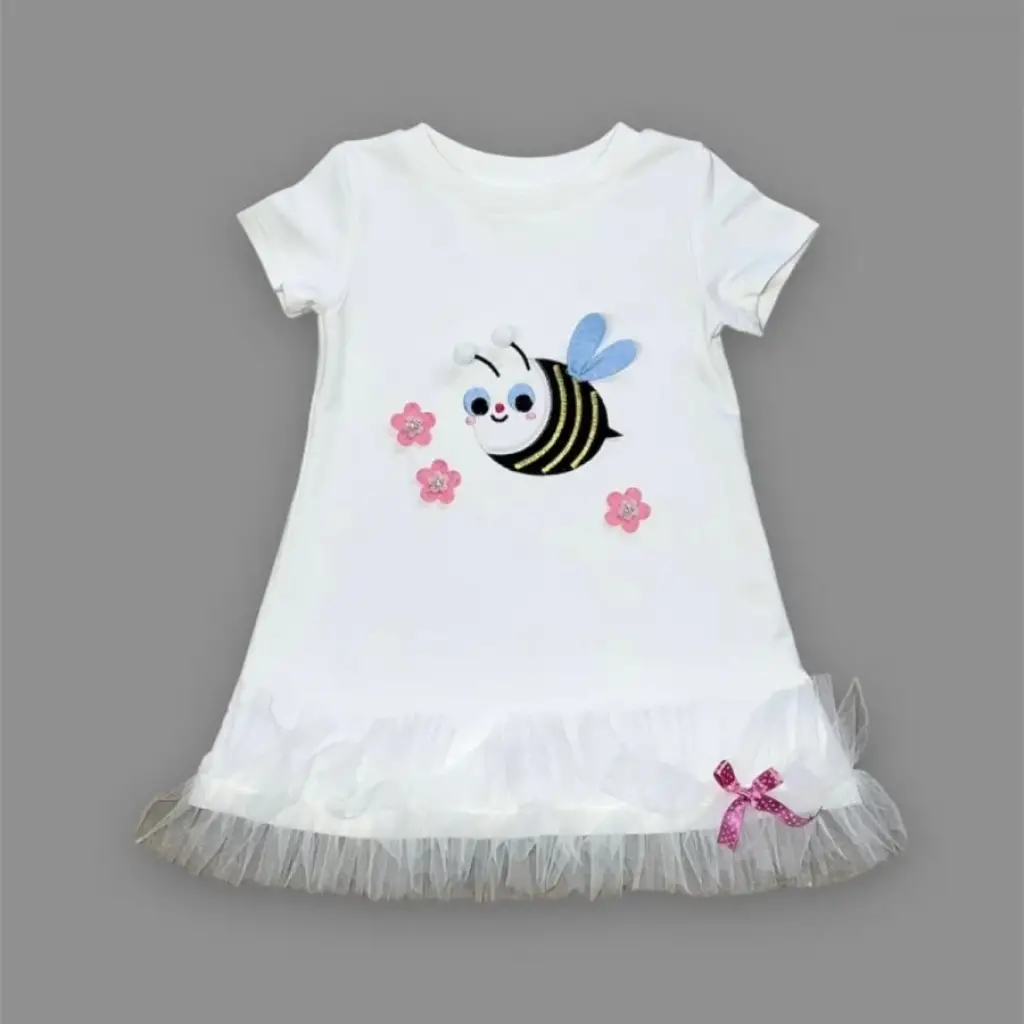 1-2-3 Yaş Arıcık Nakışlı Eteği Fırfırlı Jile Kız Çocuk Elbisesi