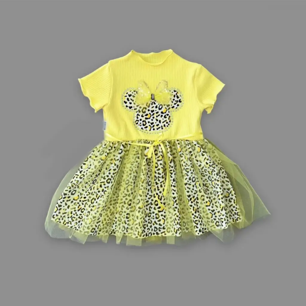 1-2-3 Yaş Fiyonklu Mickey Astarlı Etekli Kız Bebek Tütü Elbisesi