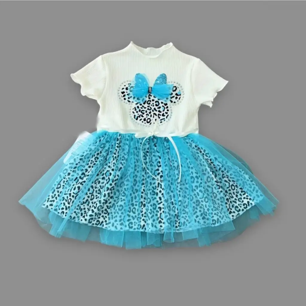 1-2-3 Yaş Fiyonklu Mickey Astarlı Etekli Kız Bebek Tütü Elbisesi