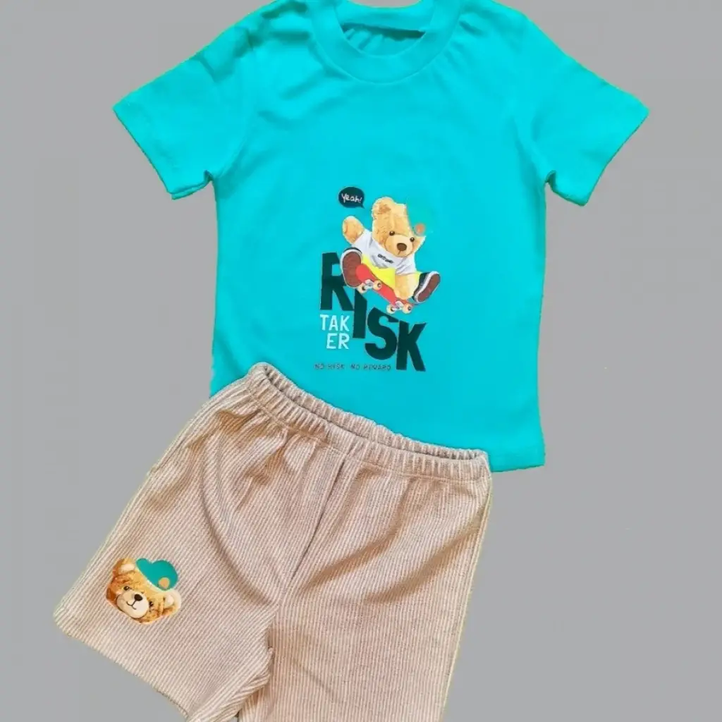 Modern Ayı Baskılı Tişört ve Şort Takımı