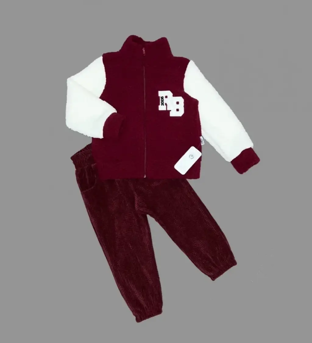 Omarı Kuzu Kumaş Fermuarlı Sweat Kadife Çocuk 2li Takım Bordo