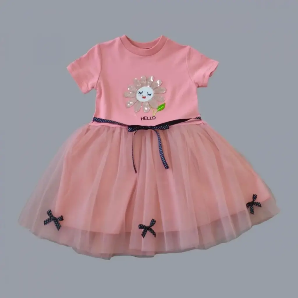 1-2-3 Yaş Payet Yapraklı Çiçek Nakışlı Astarlı Kız Bebek Tütü Elbisesi