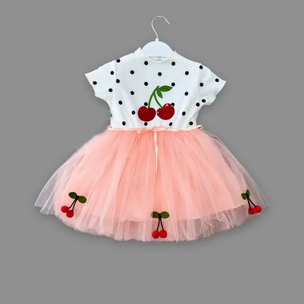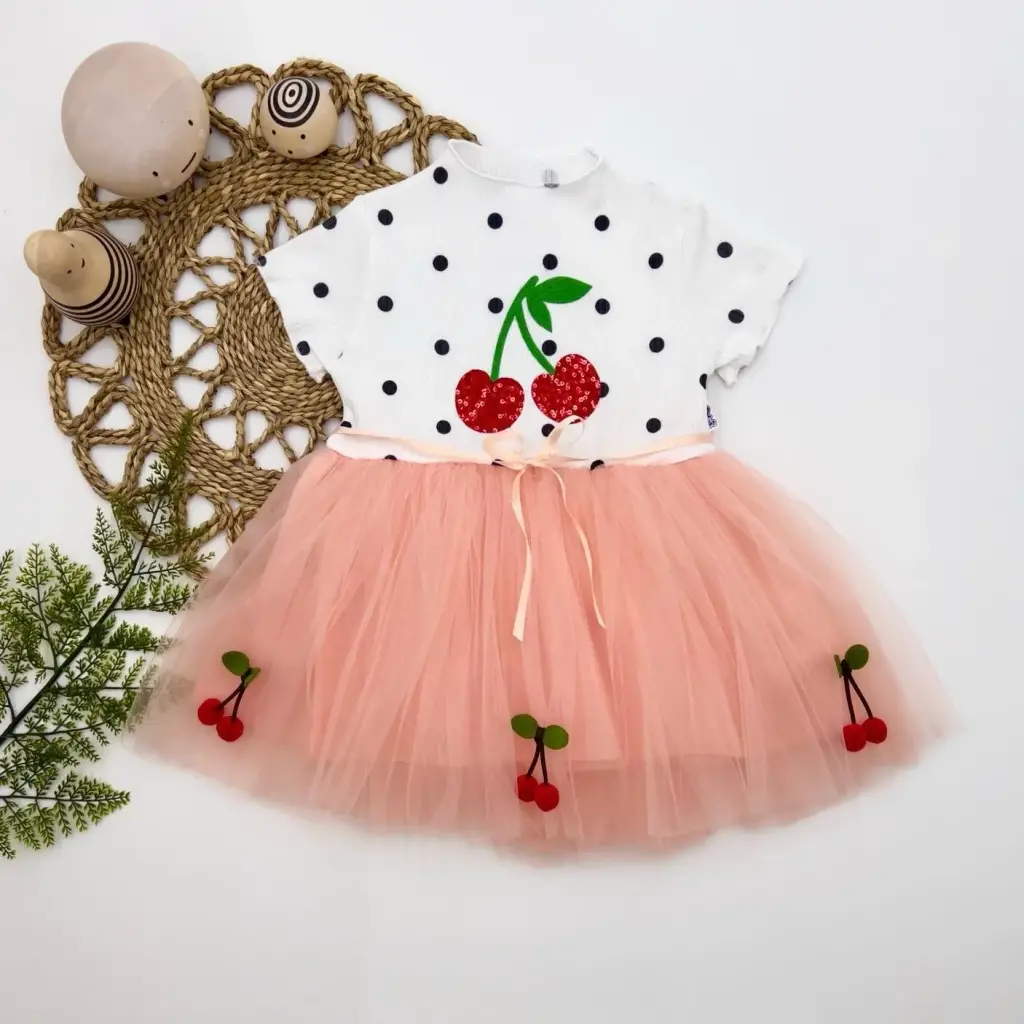 1-2-3 Yaş Payetli Kiraz Nakışlı Kiraz Etekli Kız Bebek Tütü Elbisesi