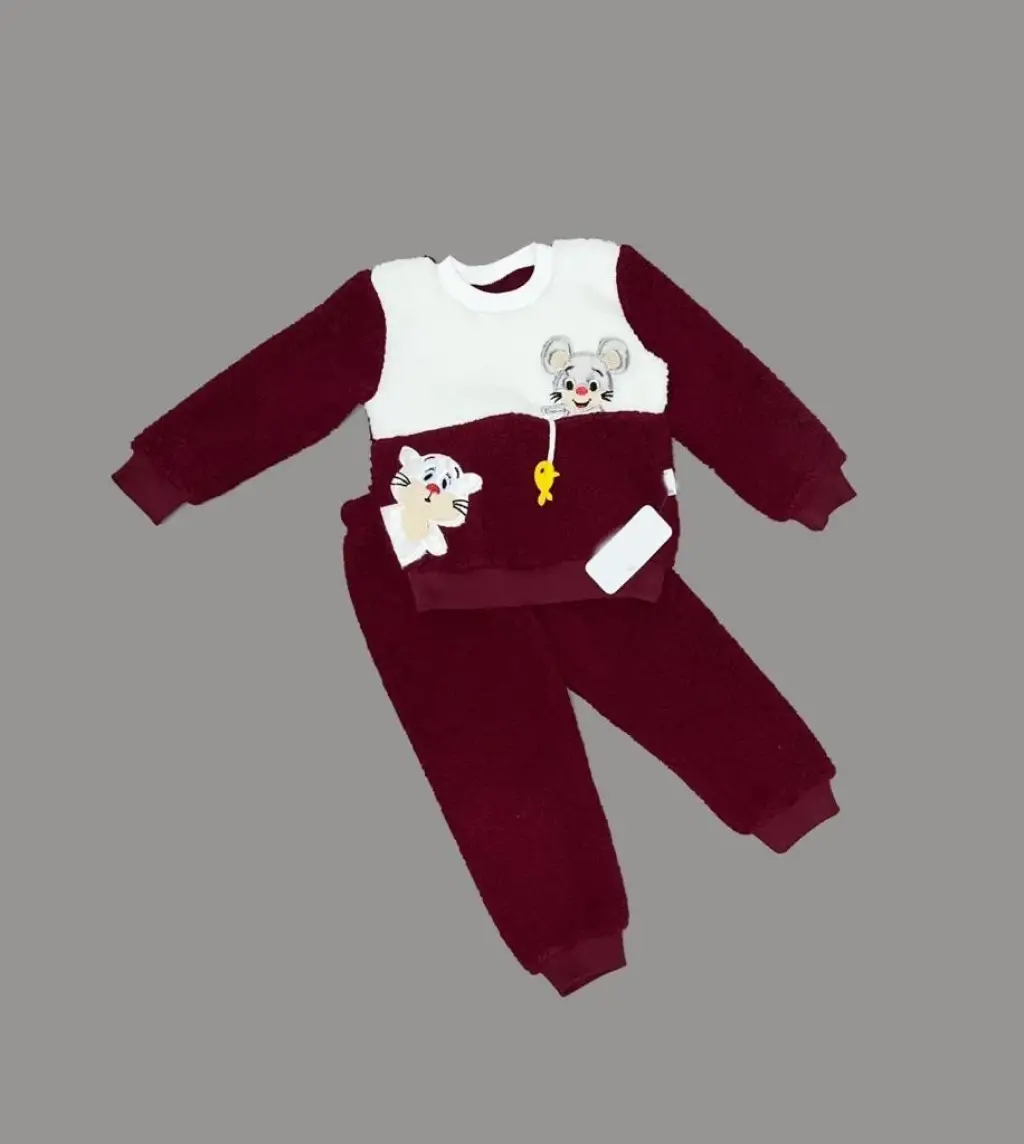 1-2-3 Yaş Sallanan Balık Nakışlı Kuzu Kumaş Sweat Pantolon Uzun Kollu Kız Erkek 2 Li Takımı