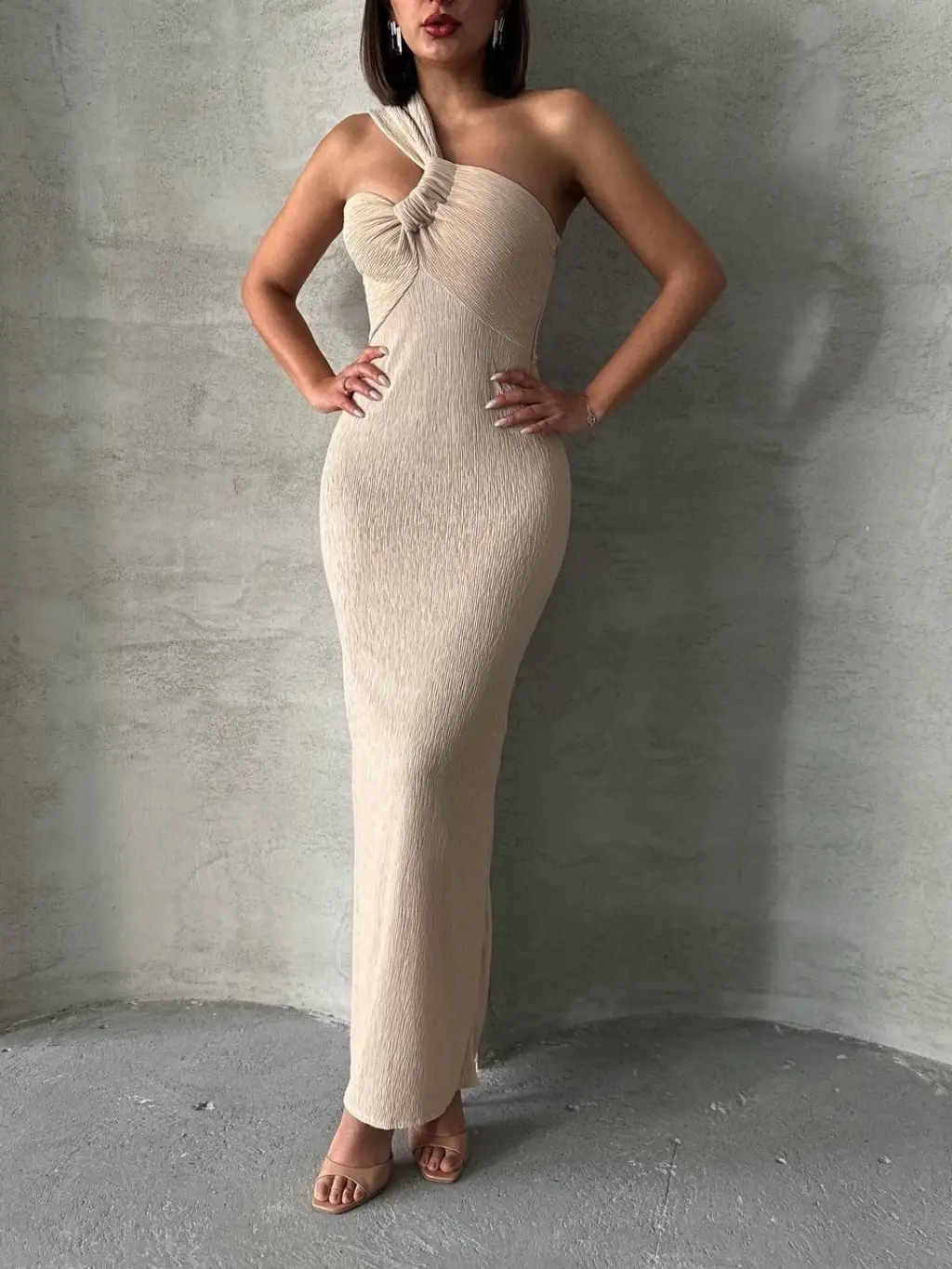 KAZAX tek omuz pliseli elbise ile her şıklık olaya hazırsınız!