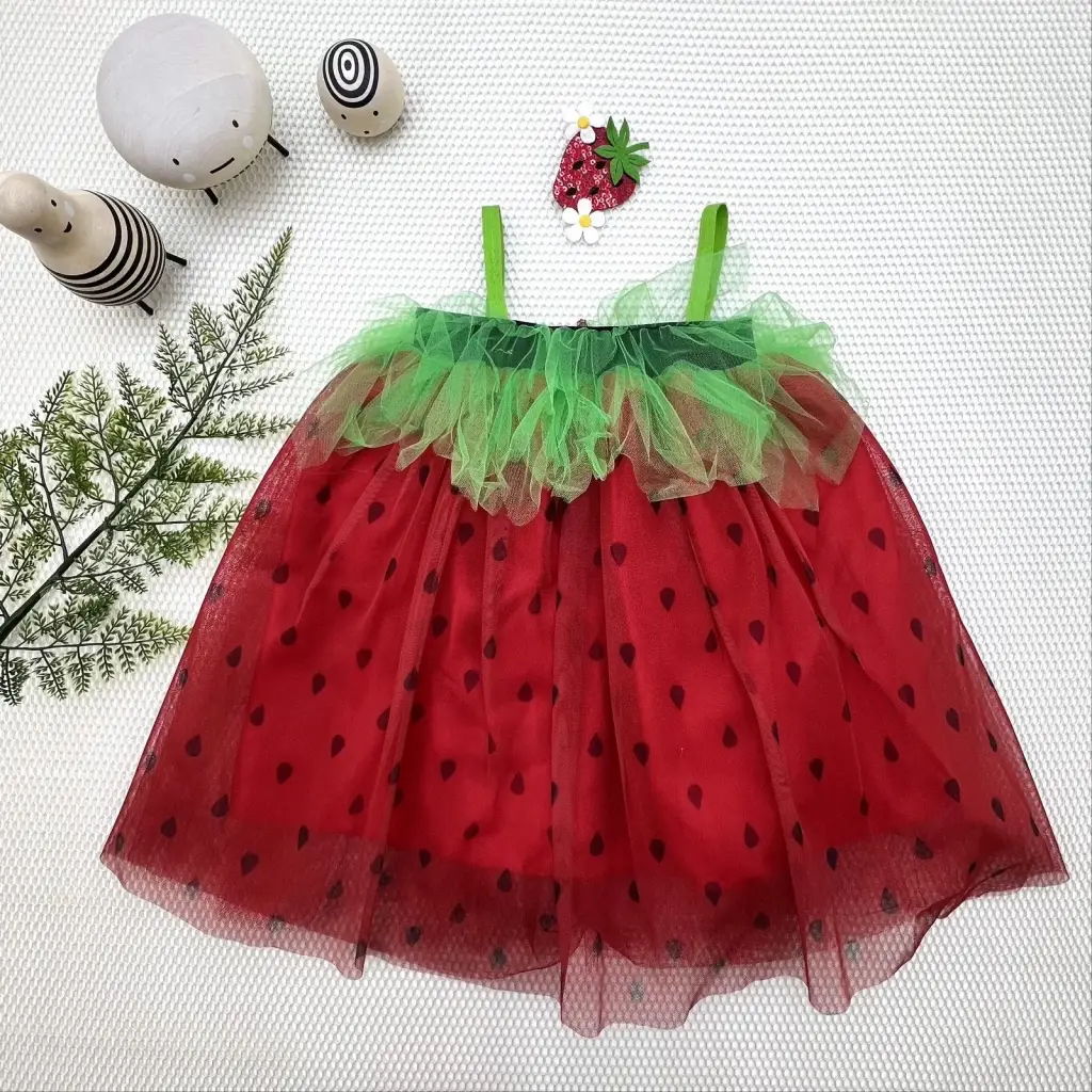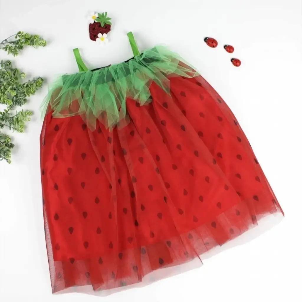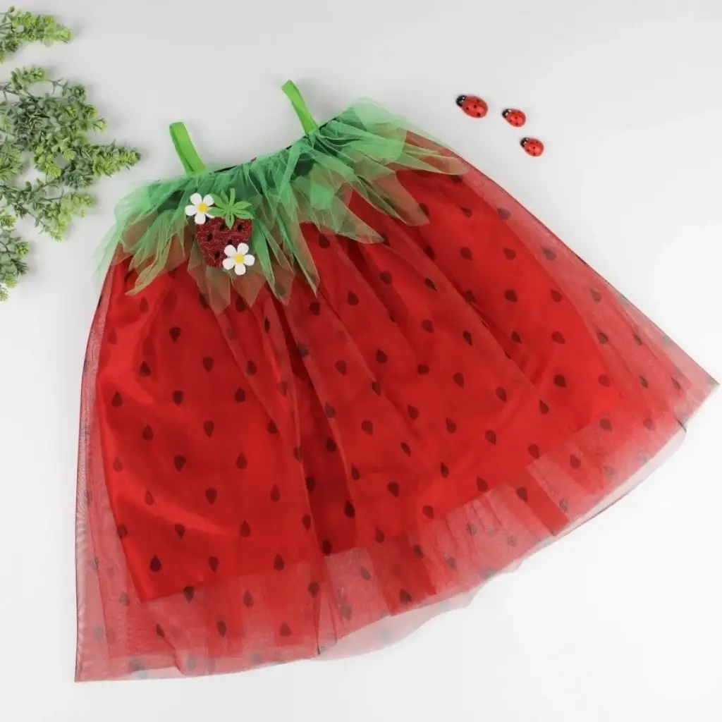 Eğlenceli Çilek Kostüm Kız Çocuk Elbise