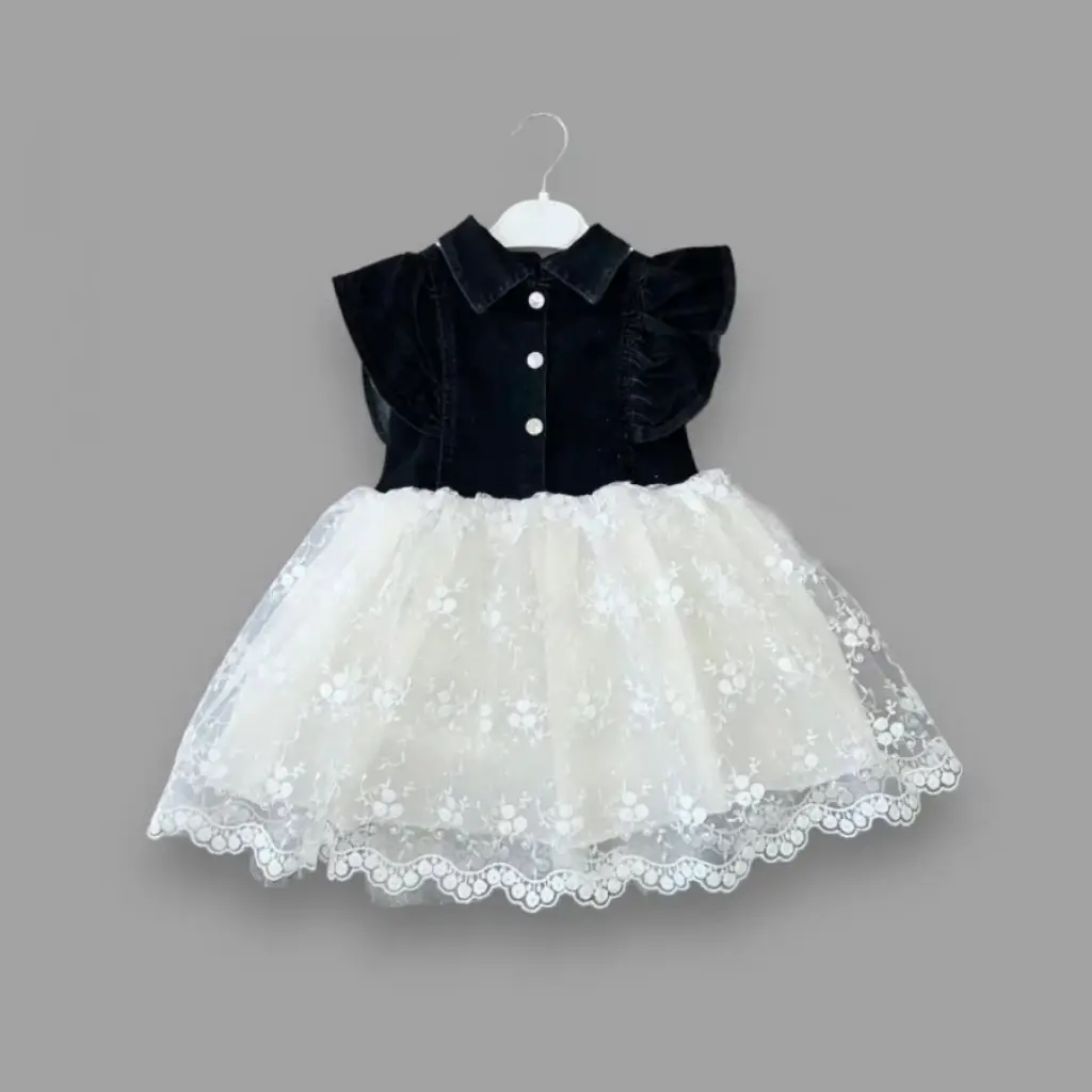 Omarı 2-3-4 Yaşlı Kız Çocuk İçin Siyah Kot Elbise