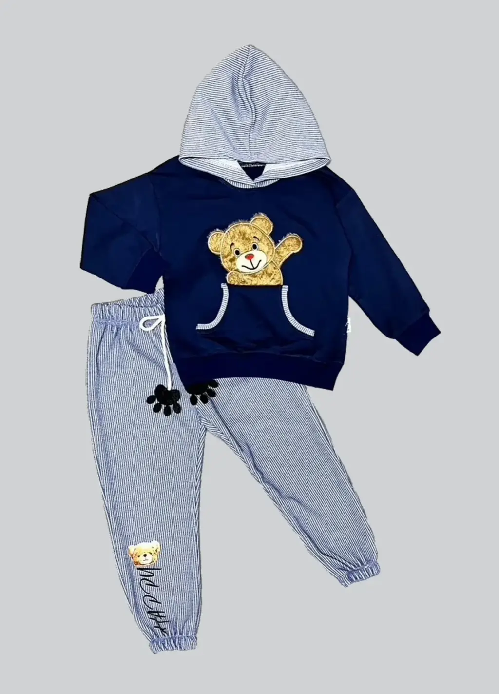Modern Ayı Desenli Kapşonlu Erkek Çocuk Takımı