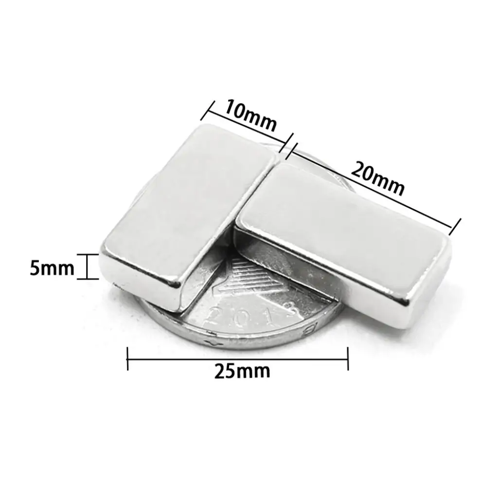 2 Adet 20x10x5 Mm Neodyum Magnet N35 Güçlü Mıknatıs Köşeli Ve Dayanıklı Nikel Kaplama