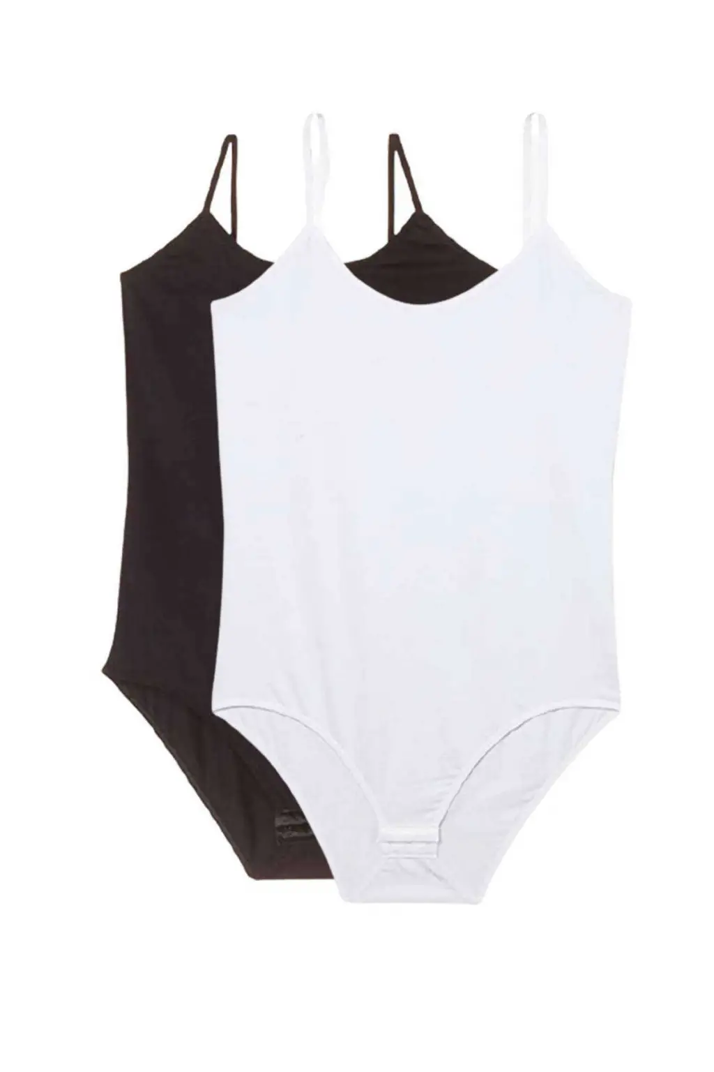 2 Adet İp Askılı Kadın Çıtçıtlı Body Siyah ve Beyaz