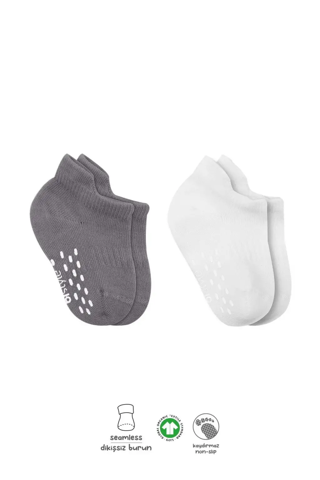 2'li Sneakers Kaymaz Colours Penye Çorap Bs20104 Gri Beyaz