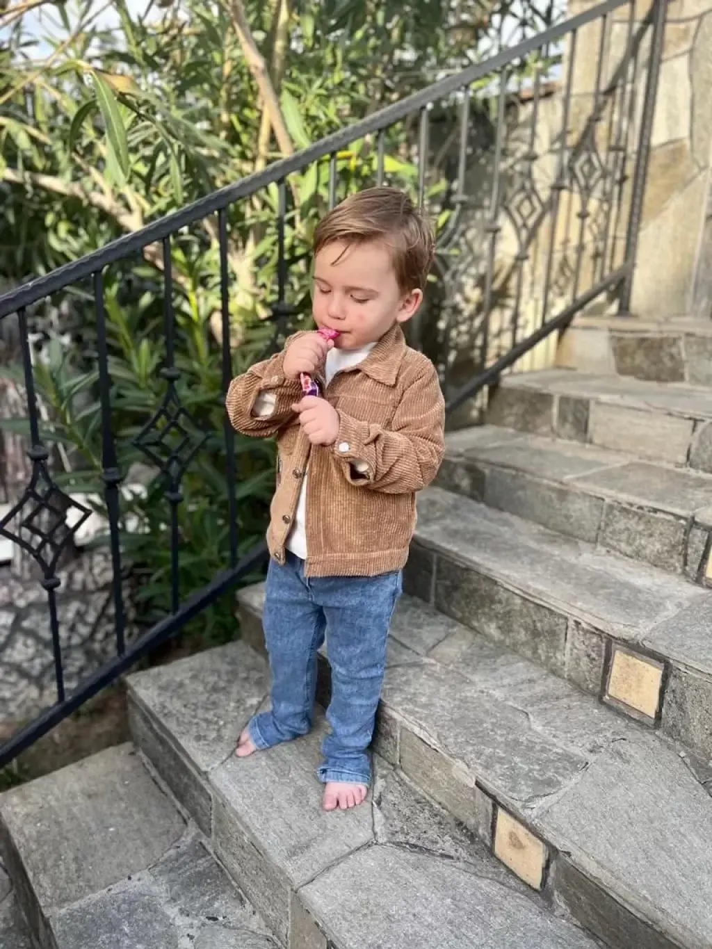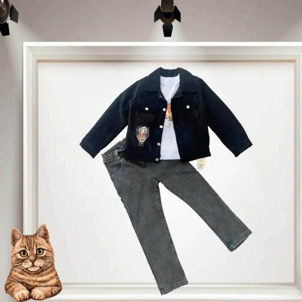 3-4-5 Yaş Fitilli Kadife Ceket Kot Pantolonlu 3lü Kız Erkek Çocuk Takımı