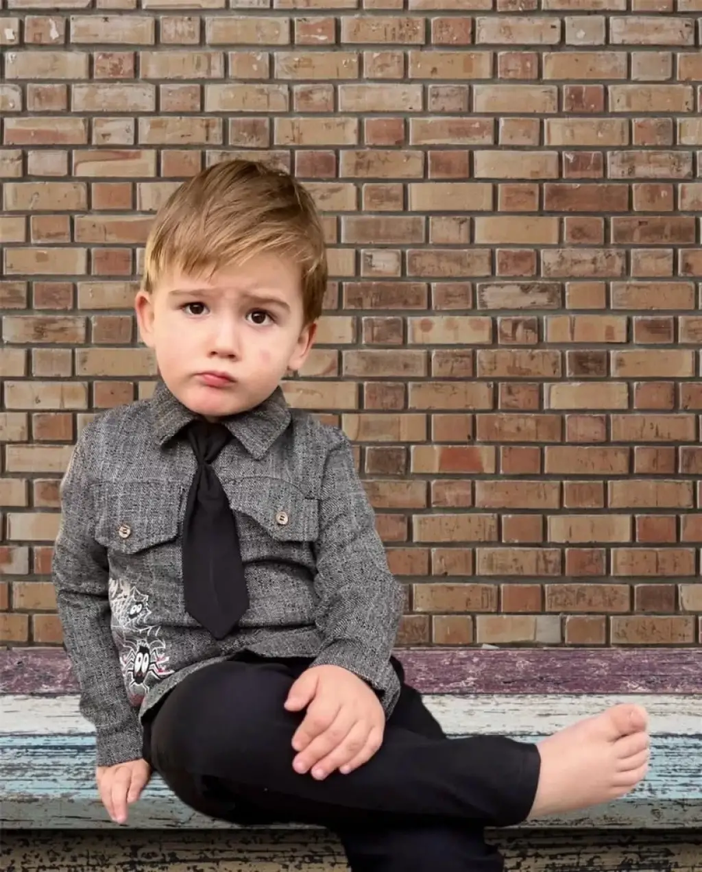 Omarı Bebekler İçin Şık Gri Üçlü Kolej Ceketli Takım
