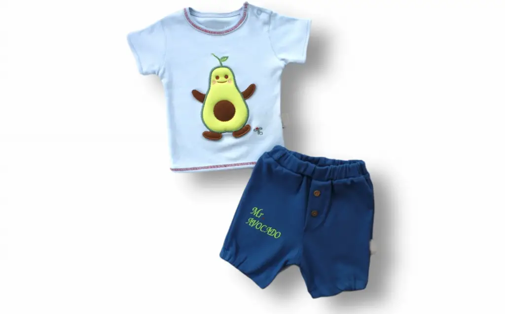 Omarı Avokado Nakışlı Bebek Takımı Mavi