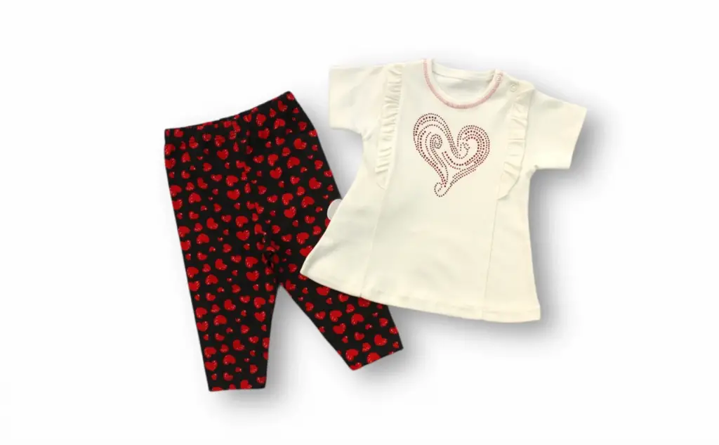 3-6 6-9 9-12 12-18 Ay Kalp Baskılı Uzun Kollu Sweatli 2li Kız Bebek Takımı