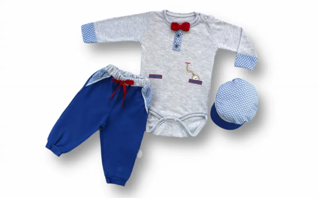 3-6 6-9 9-12 Ay Cep Saat Nakışlı Şapkalı Uzun Kollu Zıbınlı 3lü Erkek Bebek Takımı