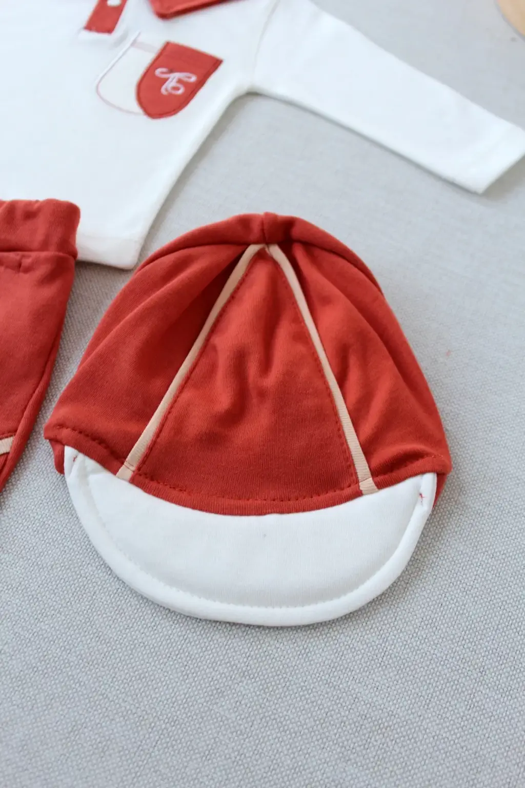 Omarı Prens Nakışlı Sweatli 3'lü Erkek Bebek Takımı - Ekru