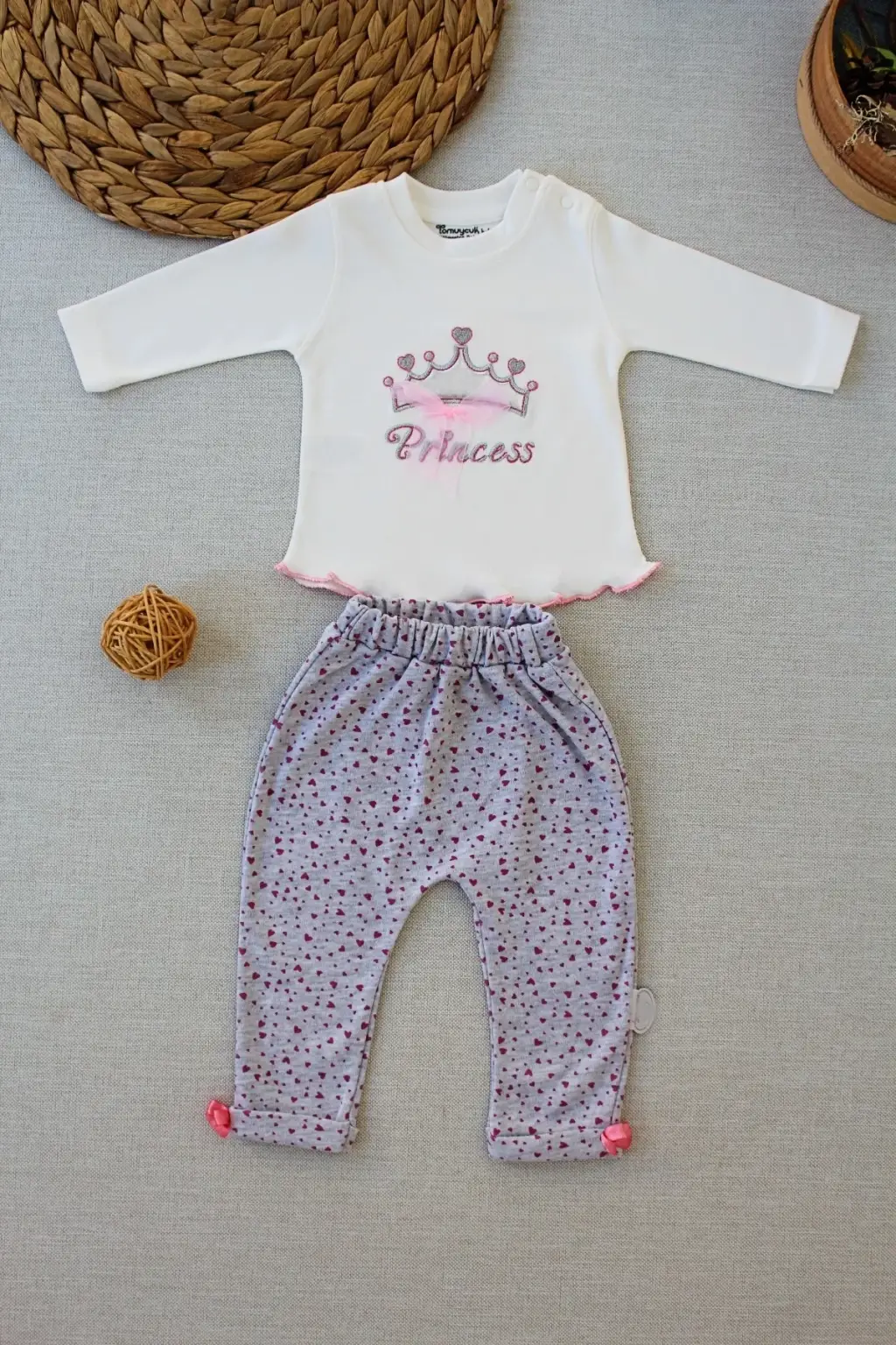 Kadın Uzun Kollu Nope Baskılı Beli Ribanalı Ikili Takım