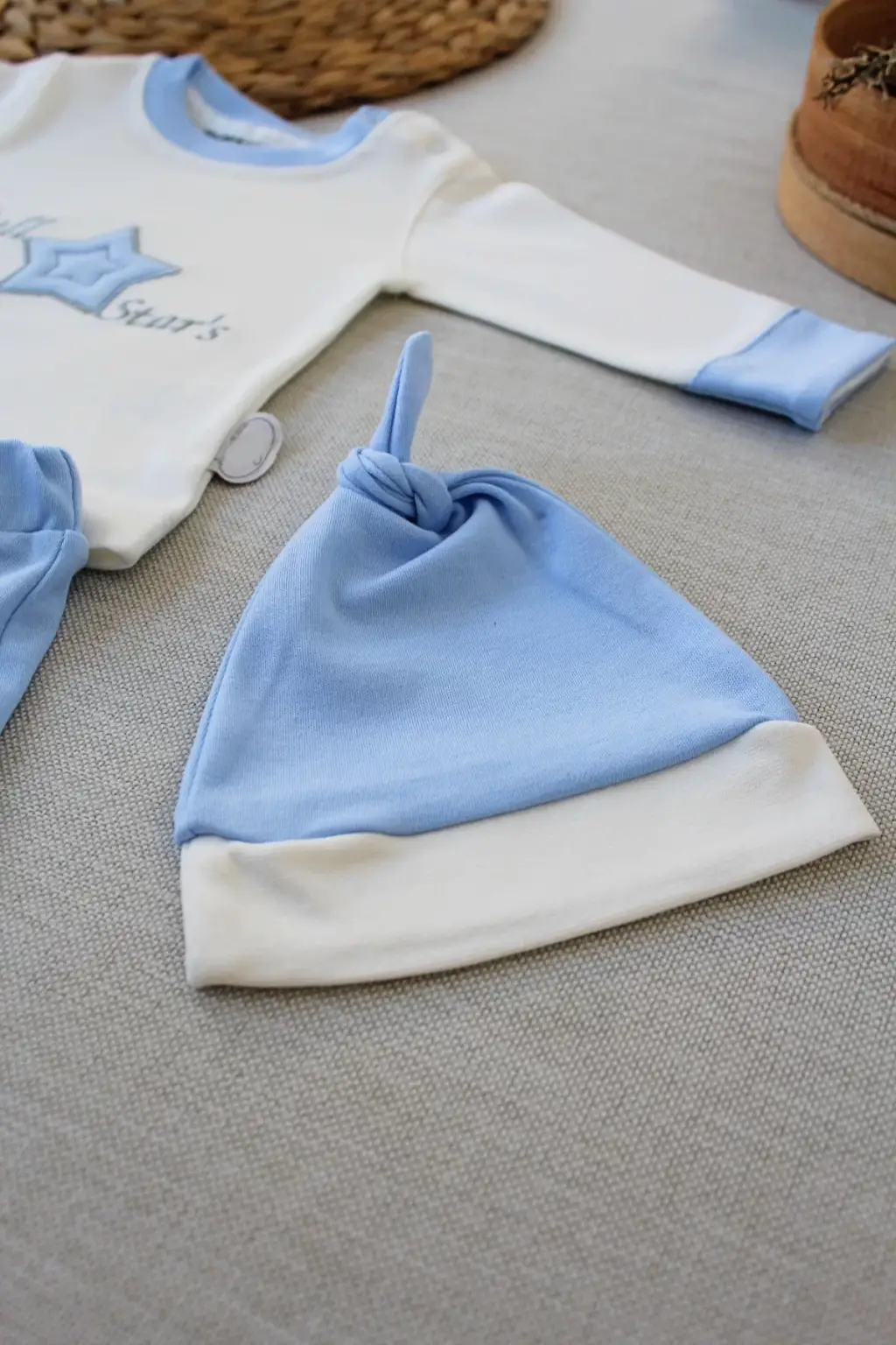 Omarı Yıldız Nakışlı Uzun Kollu Bebek Takımı - Mavi