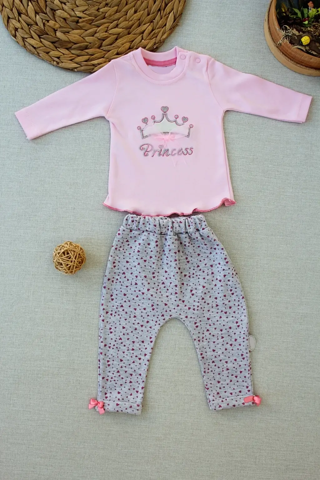 Kadın Uzun Kollu Nope Baskılı Beli Ribanalı Ikili Takım