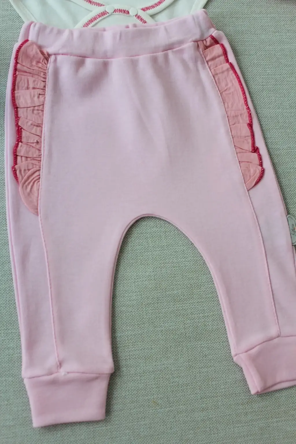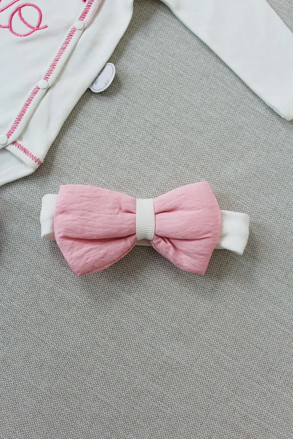 Zarif Nakışlı Kruvaze Bandanalı Uzun Kollu Bebek Takımı Pembe
