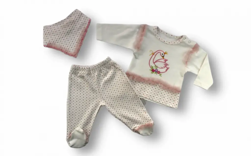 Zarif Kraliçe Kuğu Nakışlı Sweatli Bebek Takımı