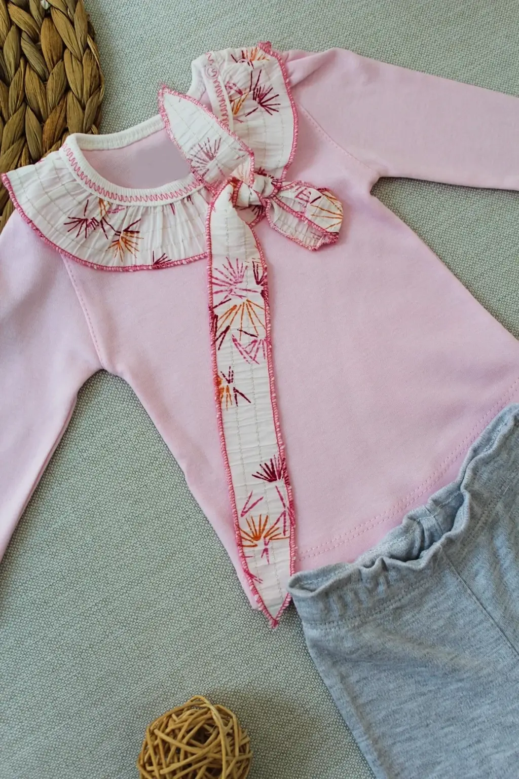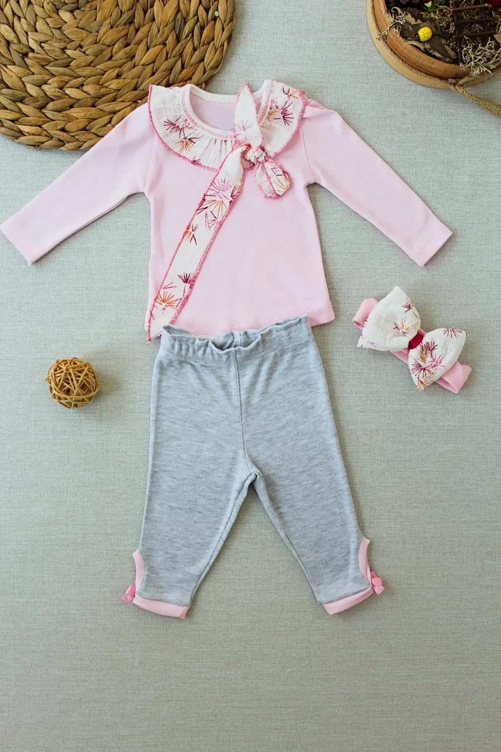 Zarif Matmazel Yaka Fırfır Detaylı Bandanalı Bebek Sweat Takımı