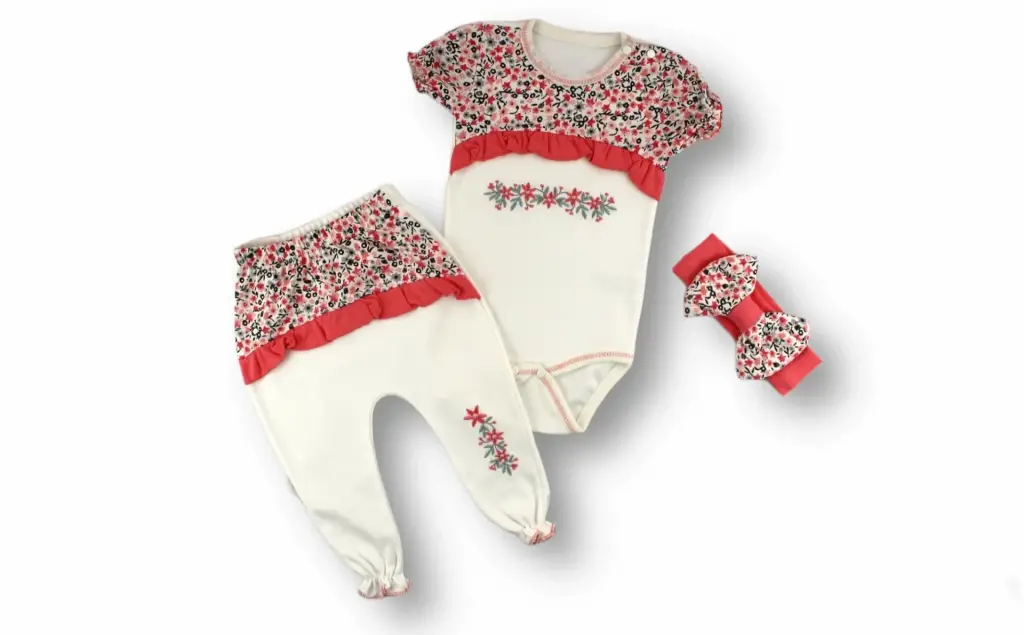 Göz Alıcı Bandanalı 3'lü Kız Bebek Takımı