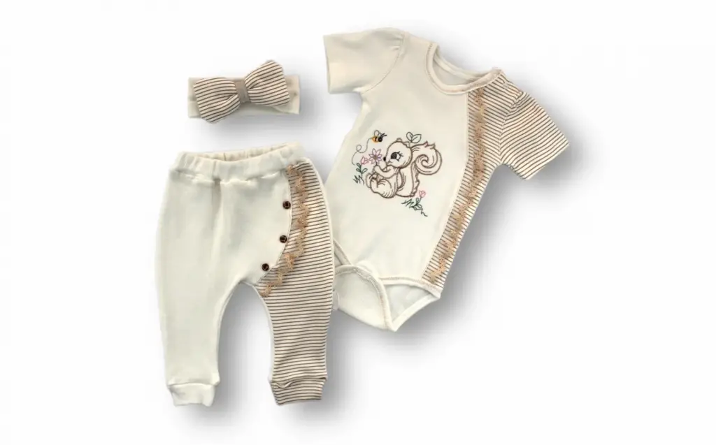 Zarif Minik Sincap Nakışlı Bebek Takımı