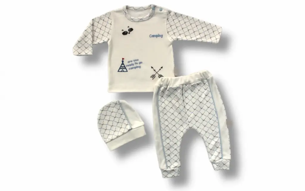 Modern Nakışlı Uzun Kollu Sweatli 3'lü Bebek Takımı