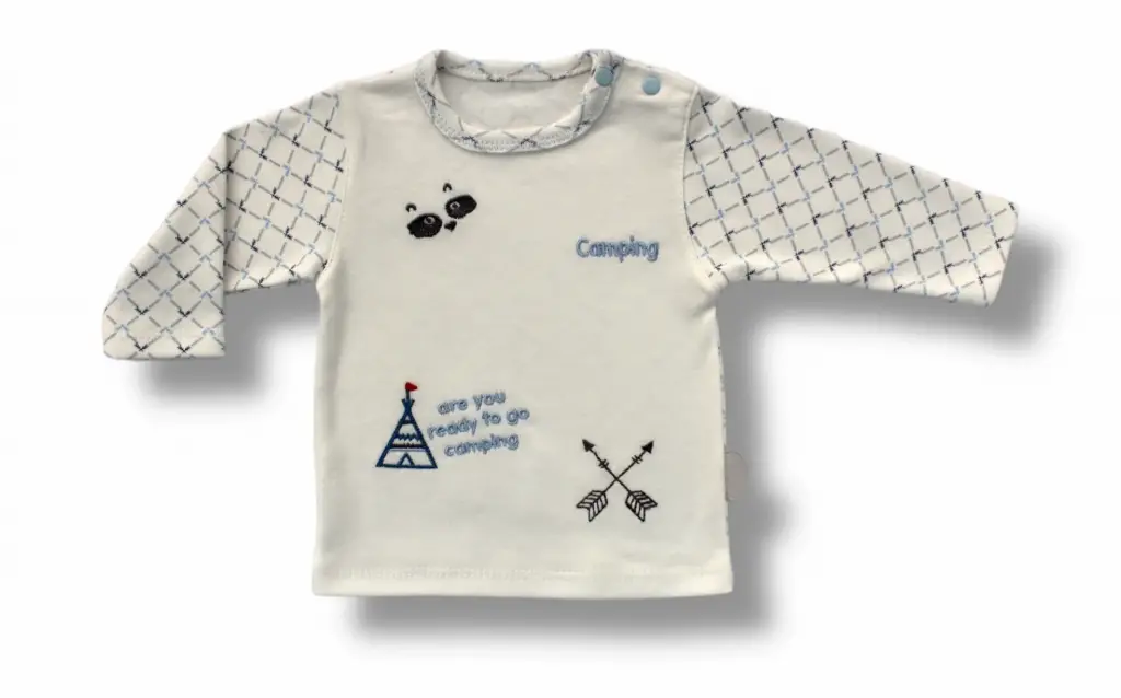 3-6 6-9 9-12 Ay My Camping Nakışlı Şapkalı Uzun Kollu Sweatli 3lü Erkek Bebek Takımı