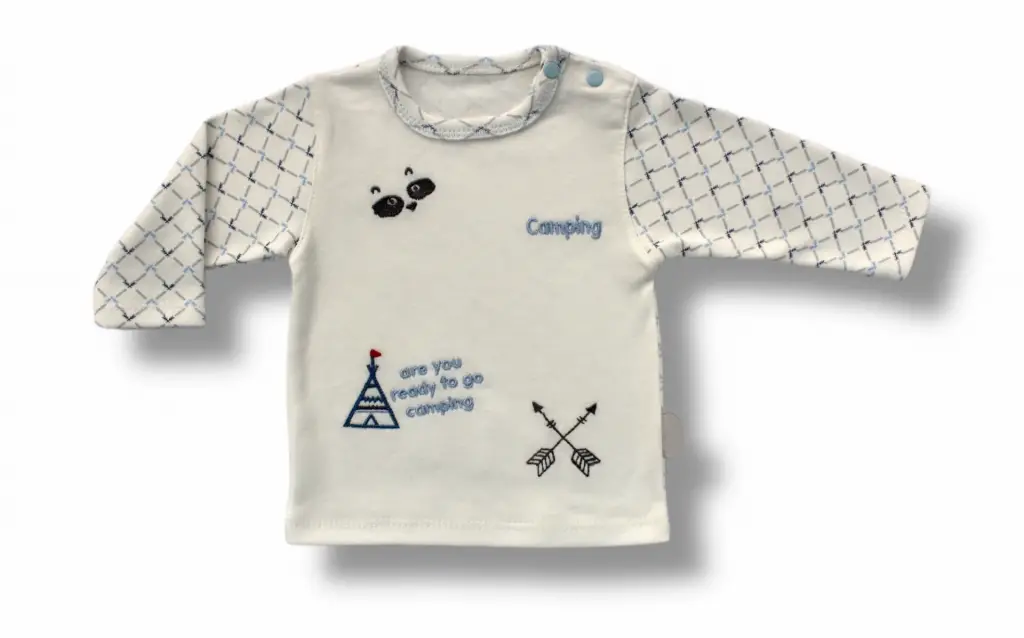 Omarı Camping Temalı Uzun Kollu Erkek Bebek Takımı 3'lü Set Ekru