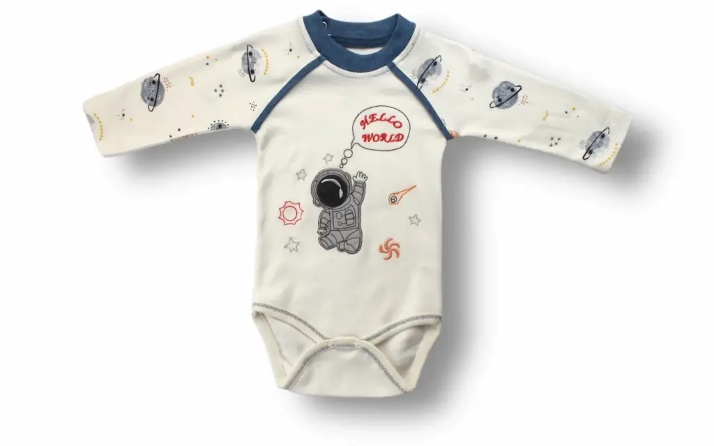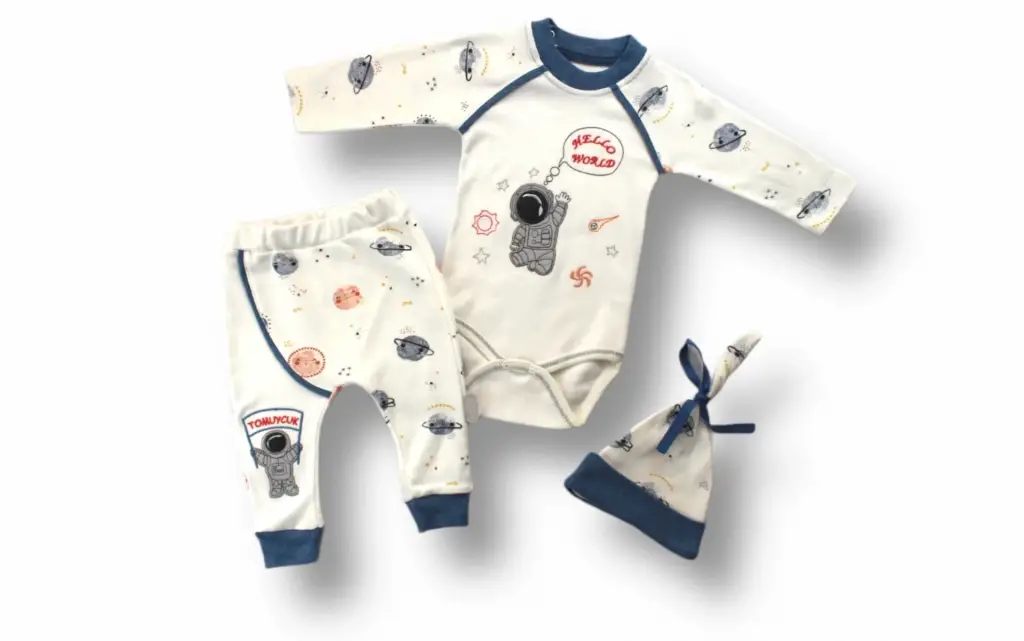 Omarı Şirin Kozmonot Nakışlı Bebek Takımı Ekru