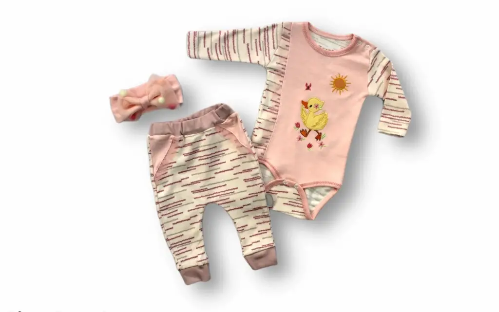 3-6 6-9 9-12 Ay Süslü Ördek Nakışlı Şapkalı Uzun Kollu Zıbınlı 3lü Kız Bebek Takımı