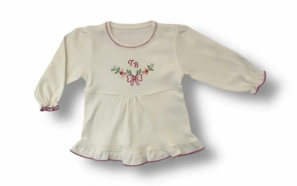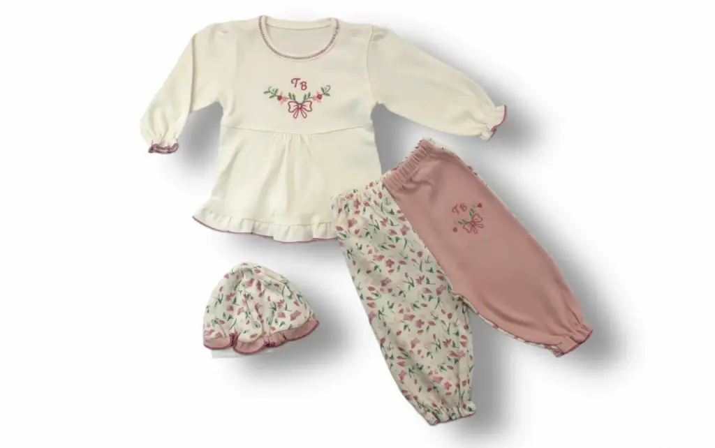 Çiçek Nakışlı Uzun Kollu Kız Bebek Takımı