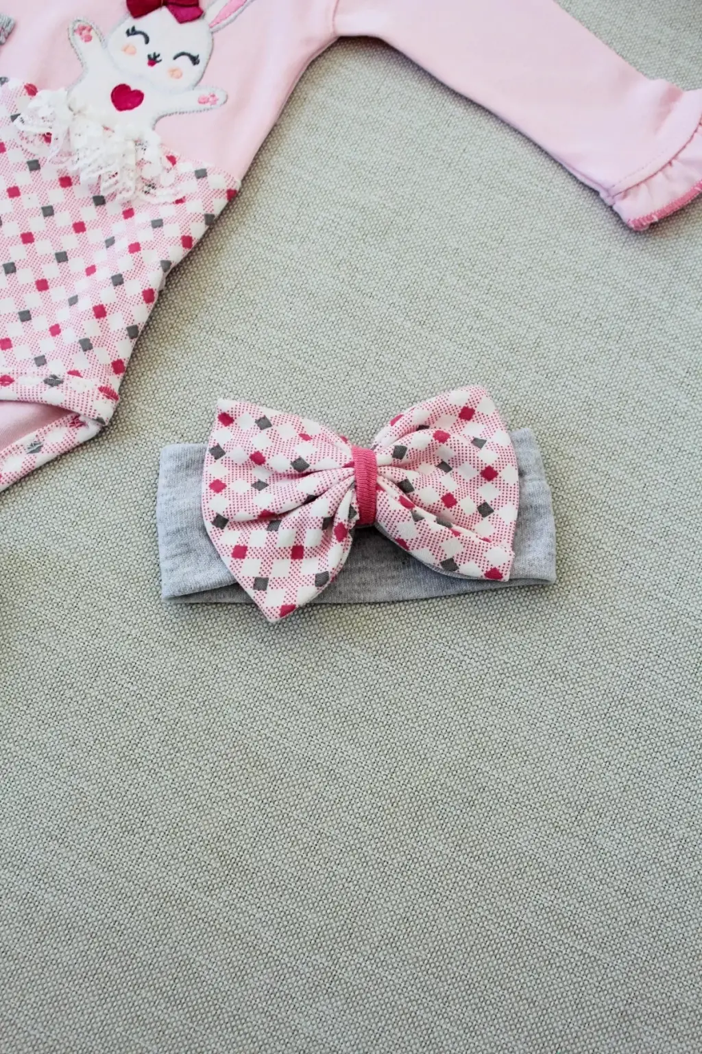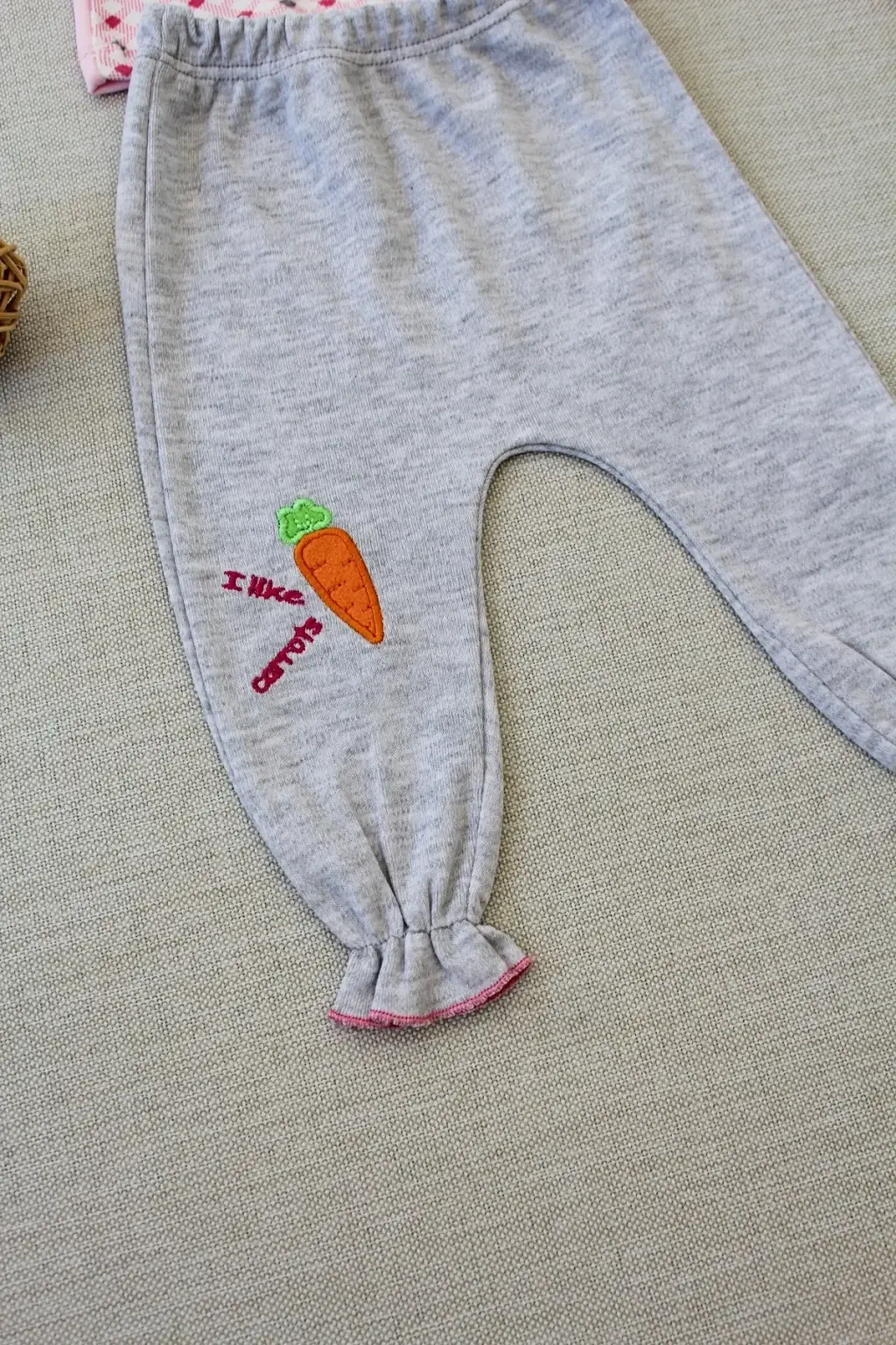 3-6 9-12 12-18 Ay Havuç Tavşan Nakışlı Bandanalı Uzun Kollu Zıbınlı 3lü Kız Bebek Tak
