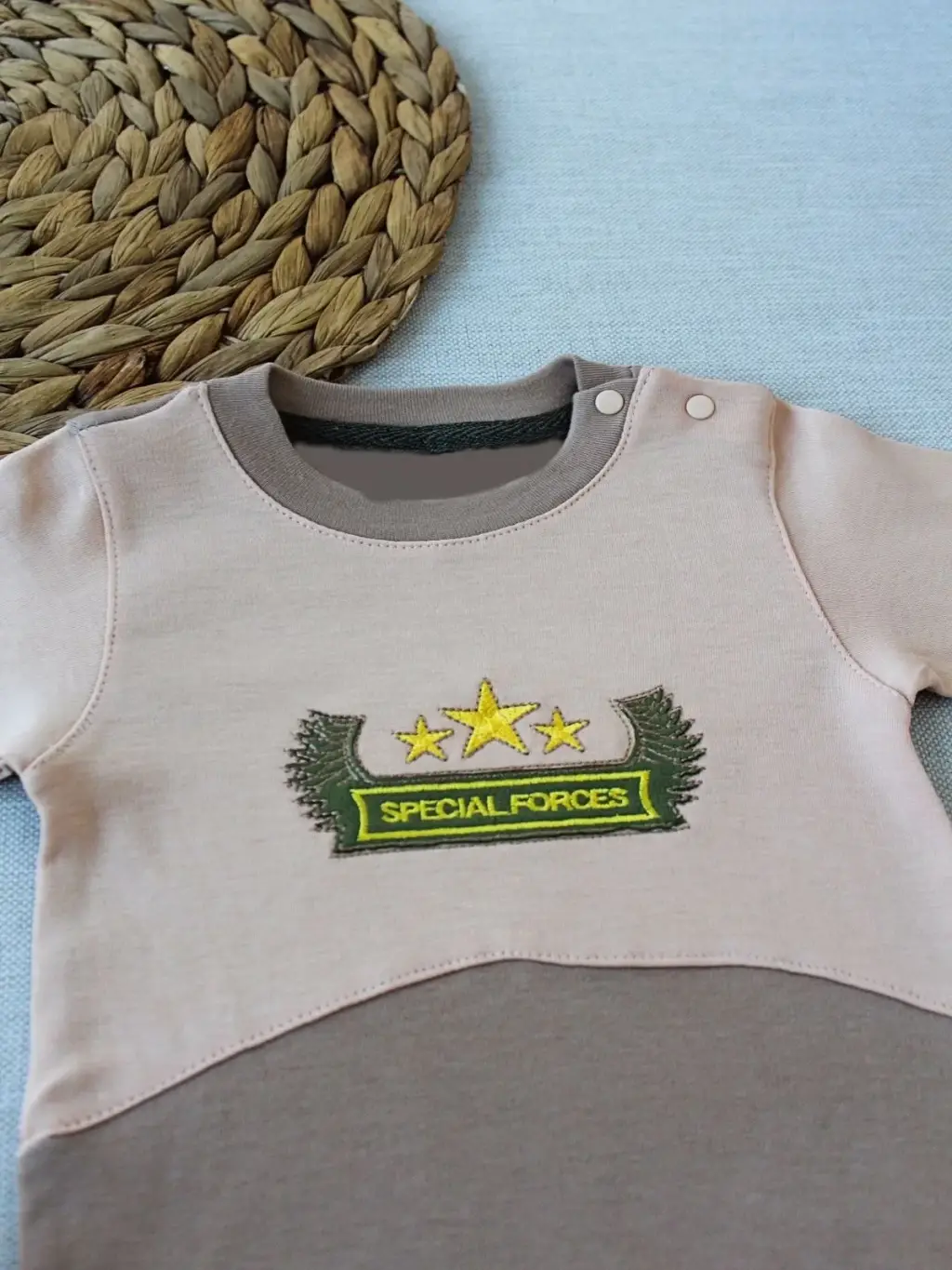 Omarı Özel Kuvvetler Nakışlı Bebek Tulumu Sütlü Kahve