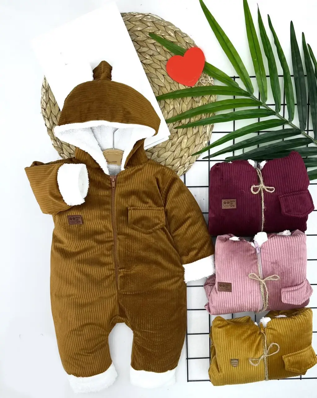 3-6-9-12 Ay Fermuar Kapamalı Kadife Kumaş İçi Tüylü Kız Erkek Bebek Tulumu