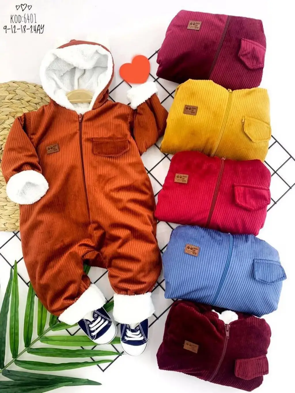 3-6-9-12 Ay Fermuar Kapamalı Kadife Kumaş İçi Tüylü Kız Erkek Bebek Tulumu