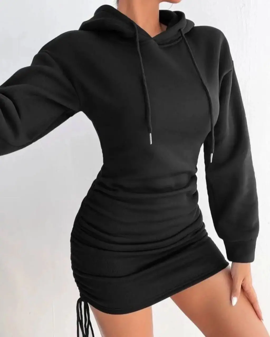 Bu siyah şık elbise, şardonlu ve kompact yapısıyla dikkat çekiyor. Üç iplik detaylarıyla zarif bir görünüm sunan bu elbise, gardırobunuzun vazgeçilmezi olmaya aday. Üst kısmında bulunan kapşonuyla fark yaratan bu elbise, hem şık hem de rahat bir tercih arayan kadınlar için ideal bir seçenek.