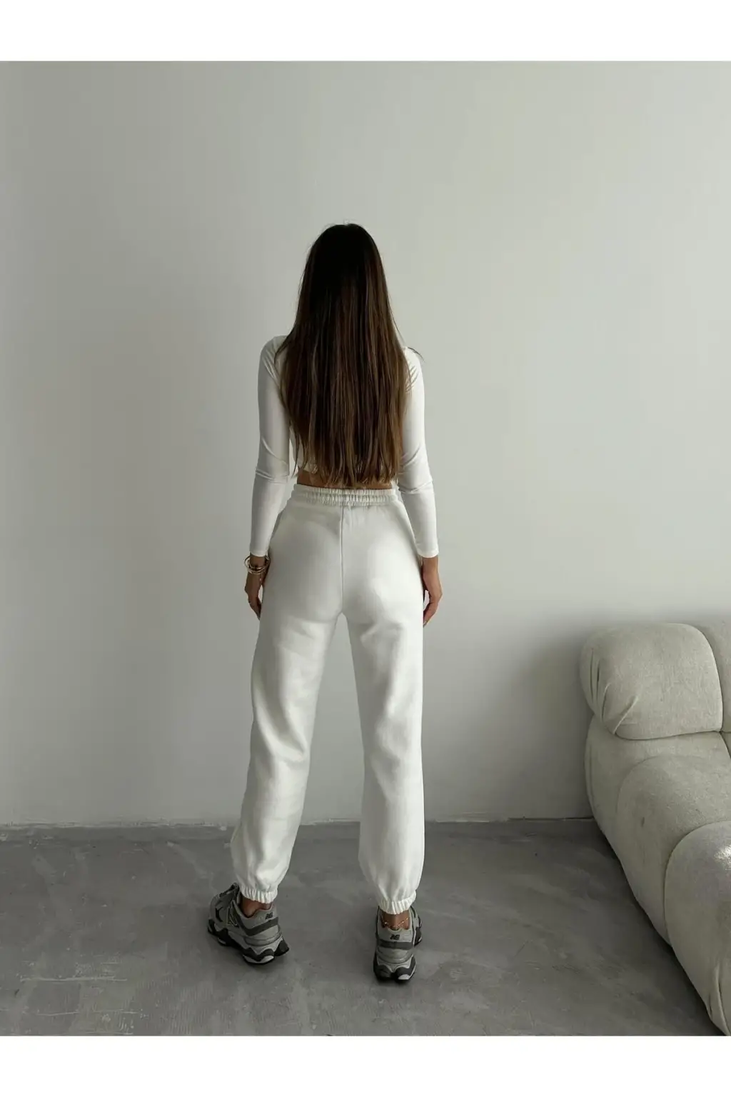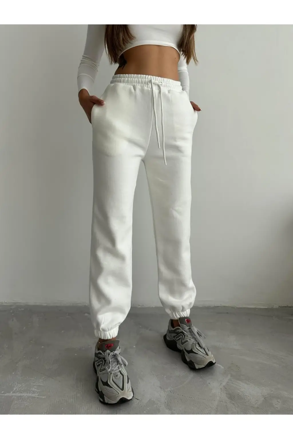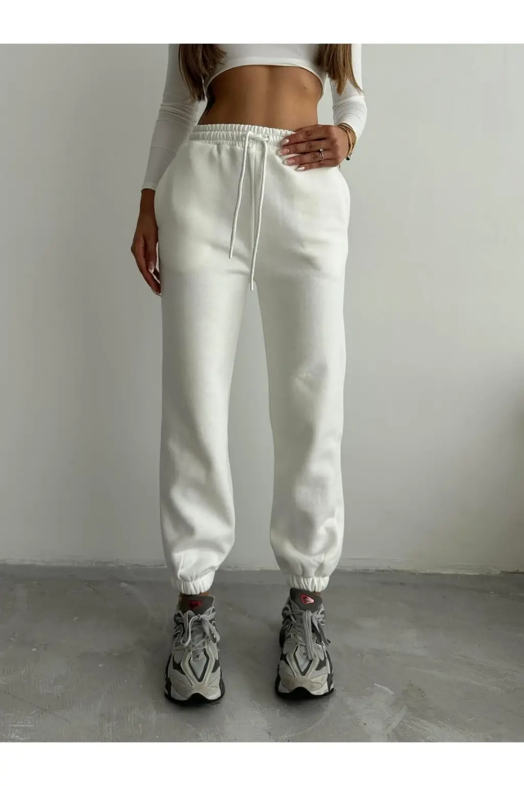 3 iplik şardonlu paça lastikli eşofman beyaz is001