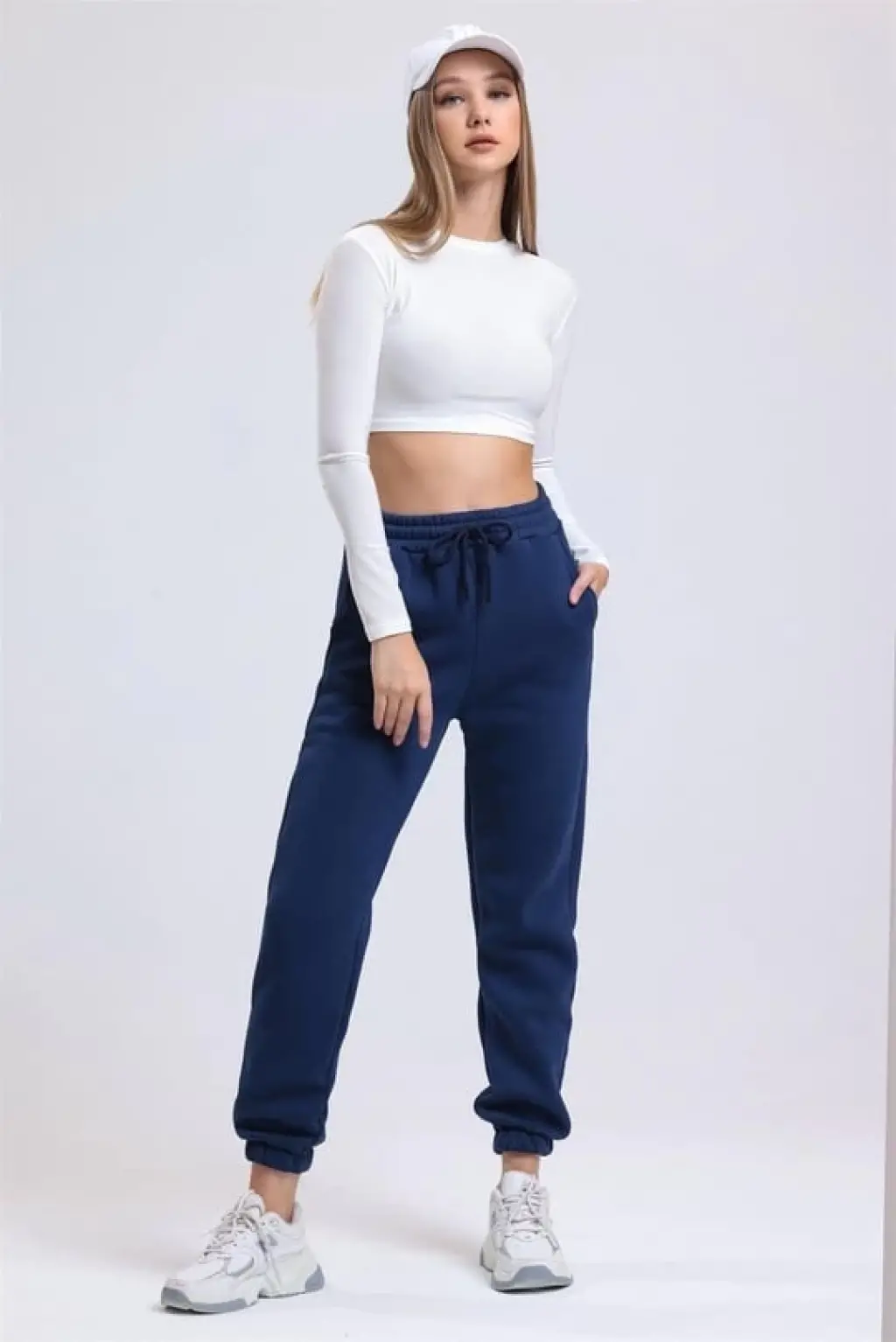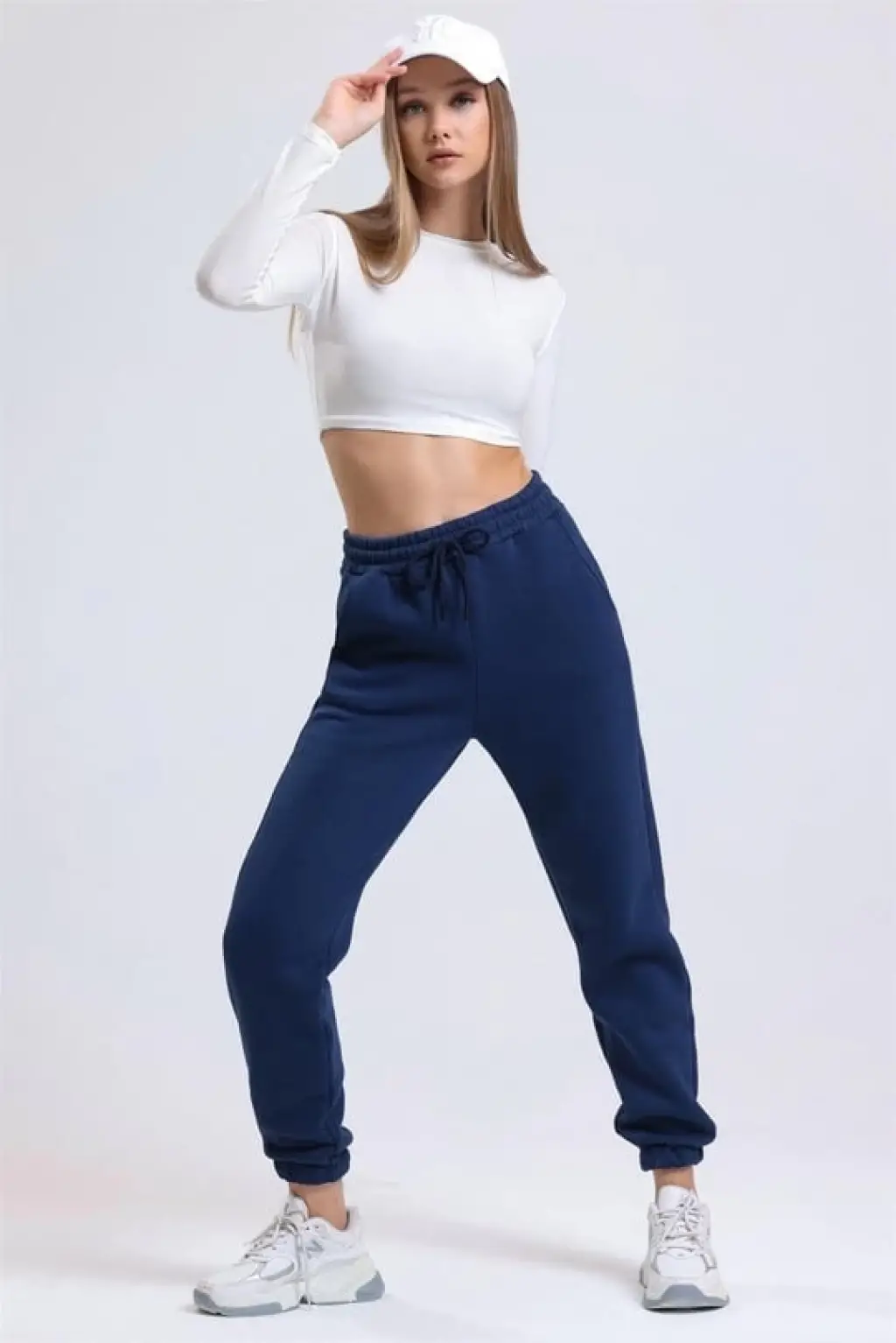 İşte spor yaparken ve günlük hayatta rahatlıkla tercih edebileceğiniz Lacivert 3 İplik Şardonlu Paça Lastikli Eşofman!
