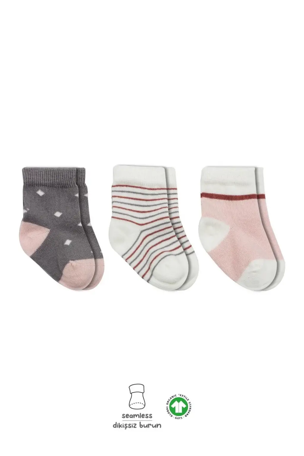 3'lü Penye Kız Soket Çorap Bs10112 Gri