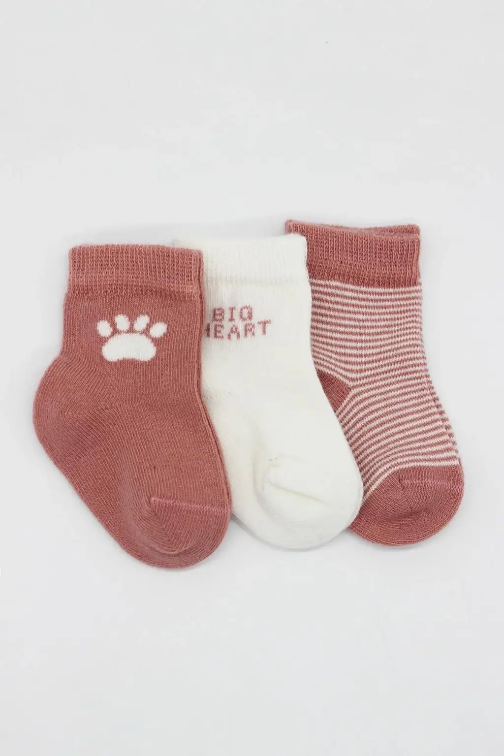 Omarı Yumuşak ve Şık 3'lü Penye Çorap Seti Pudra Renkli