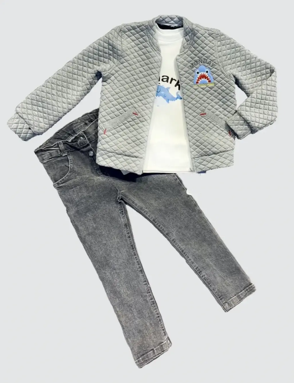 4-5-6 Yaş Kot Pantolonlu Pilot Mont Uzun Kollu Penye Sweat 3lü Erkek Çocuk Takımı