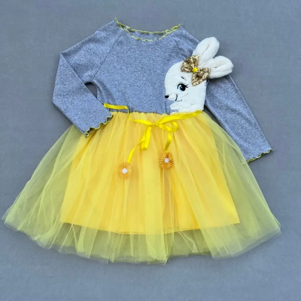 Zarif Tavşan Desenli Kız Çocuk Tütü Elbise