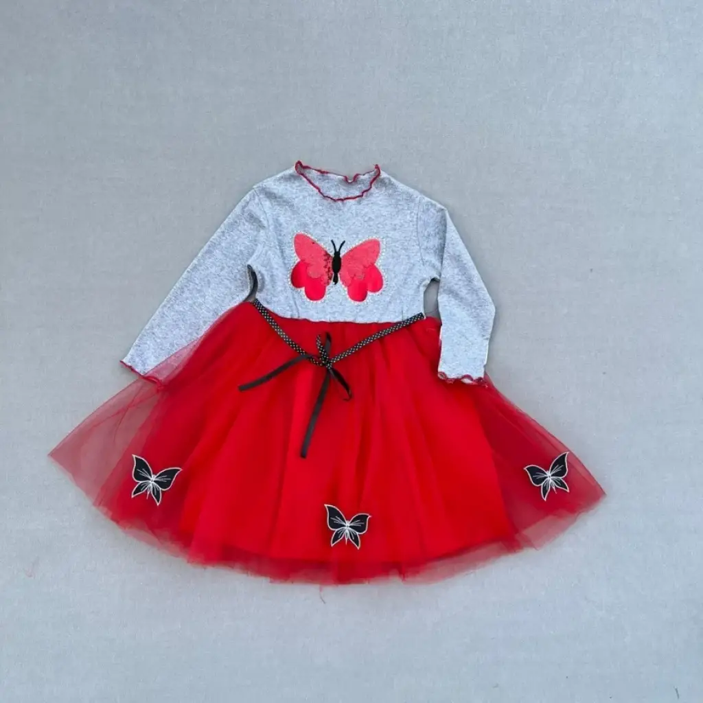 Göz Alıcı Kelebek Desenli Kız Çocuk Tütü Elbise Kırmızı